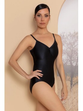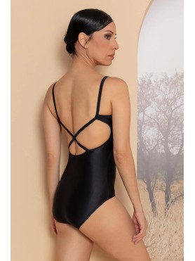 Esta malla demuestra que lo básico puede ser encantador. Este modelo de tirantes presenta un delicado escote en V con fruncido que le aporta un sutil encanto, además de un corte en el busto para un ajuste perfecto. La espalda se realza con los tirantes cruzados. Fabricado en un tejido altamente elástico, ofrece comodidad y total libertad de movimiento. El sutil brillo del material le da un toque sofisticado.