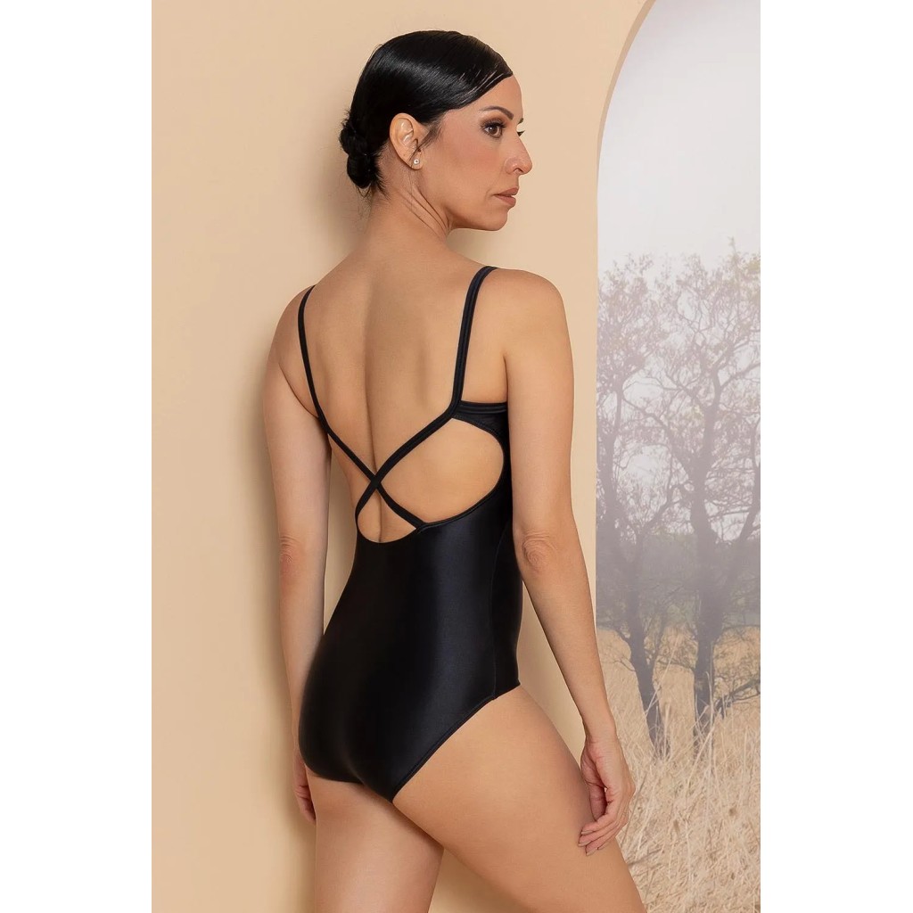 Este maillot de tirantes finos se realza con un escote en V en la espalda y aberturas delanteras. El material brillante y la firma de Só Dança en toda la prenda le confieren un aspecto elegante y auténtico. Con buena elasticidad y compresión, ofrece libertad de movimiento, seguridad y comodidad constante en todas tus actividades.