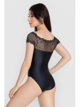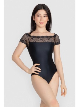 Malla femenina adulto con escote canoa y mangas casquillo hechas en encaje. Parte de abajo hecha en LIGHT®, una tela muy liviana de hilos poliamida y elastano de la más alta calidad para seguir todos los movimientos del cuerpo.-Shimmer Microfiber/Tul Elástico
