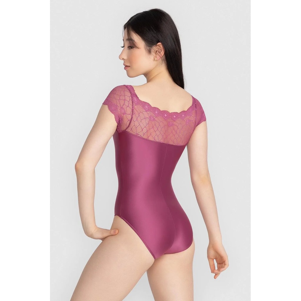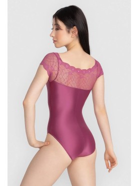 Malla femenina adulto con escote canoa y mangas casquillo hechas en encaje. Parte de abajo hecha en LIGHT®, una tela muy liviana de hilos poliamida y elastano de la más alta calidad para seguir todos los movimientos del cuerpo.-Shimmer Microfiber/Tul Elástico
