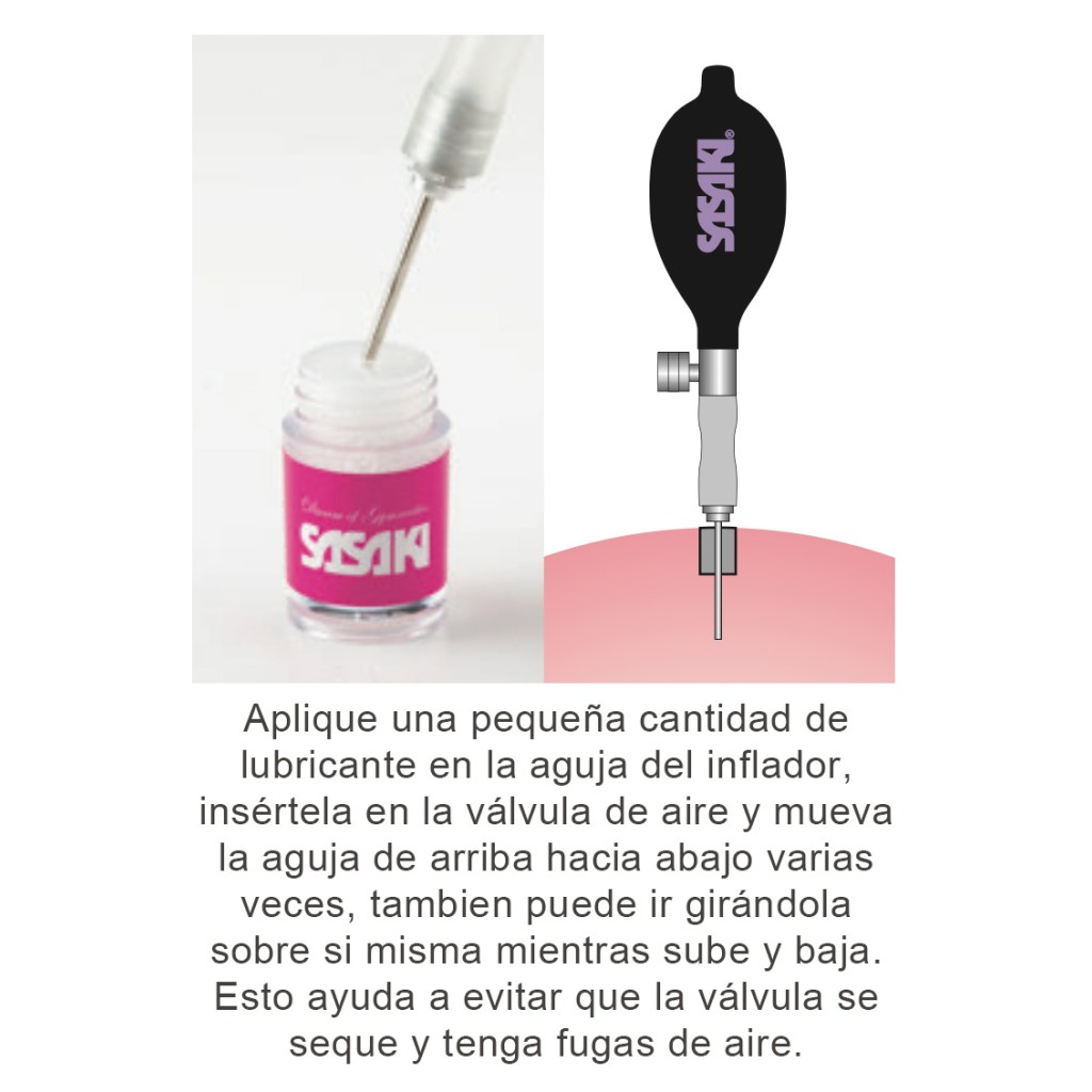 Usando este producto regularmente, mejora el deslizamiento de la aguja al inflar y la vida útil de la vávula.